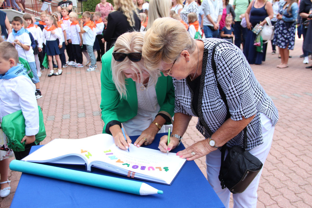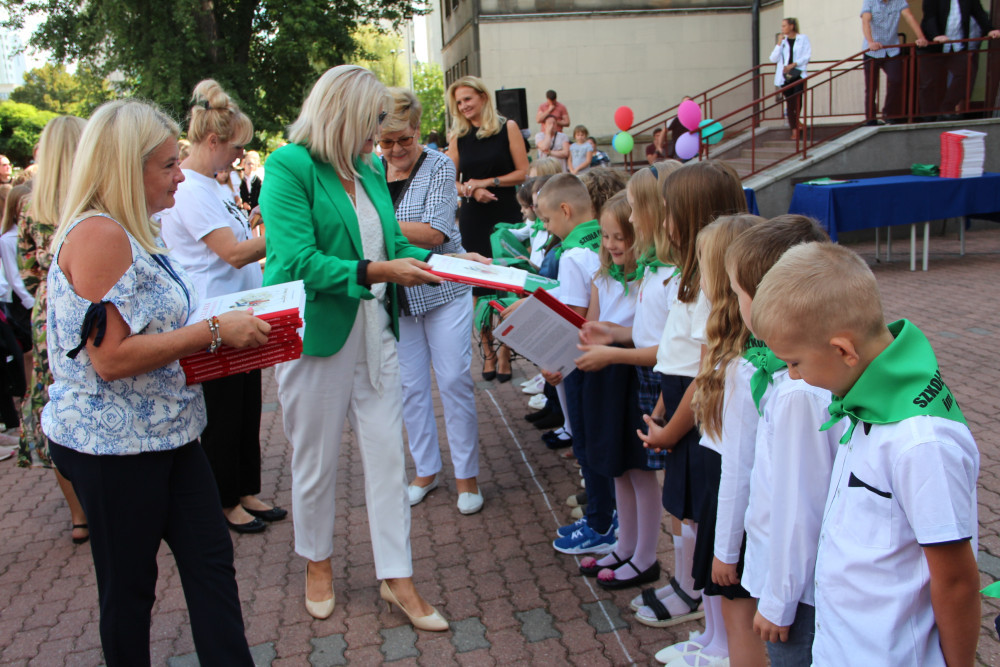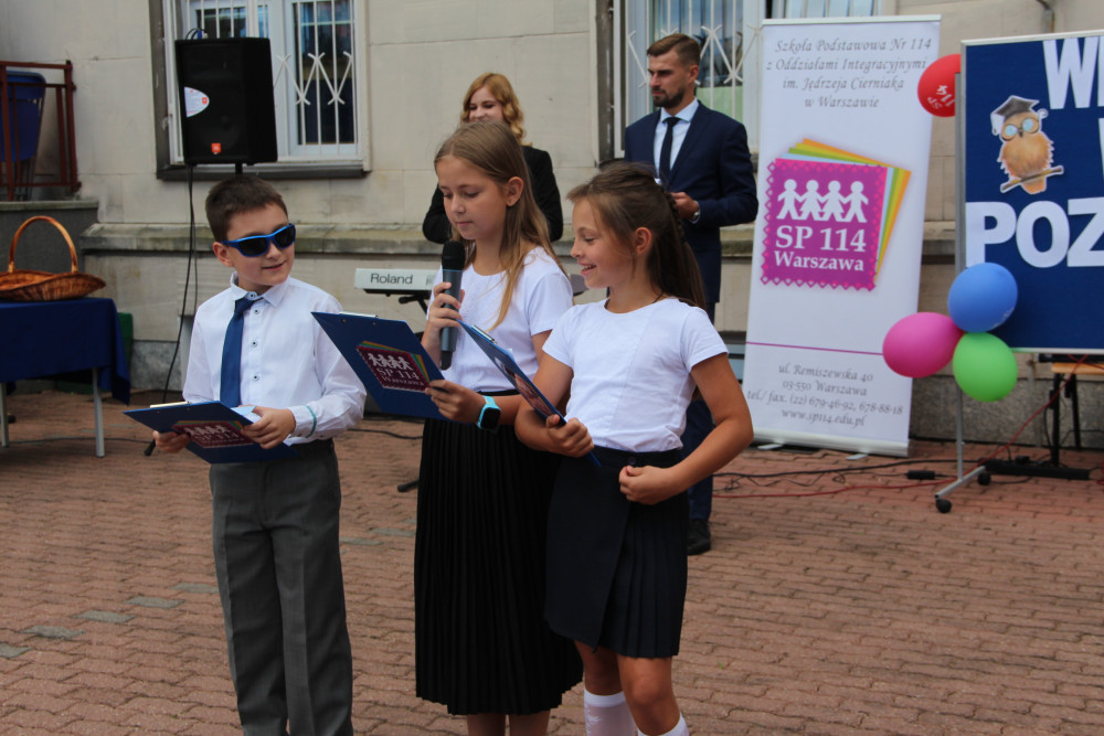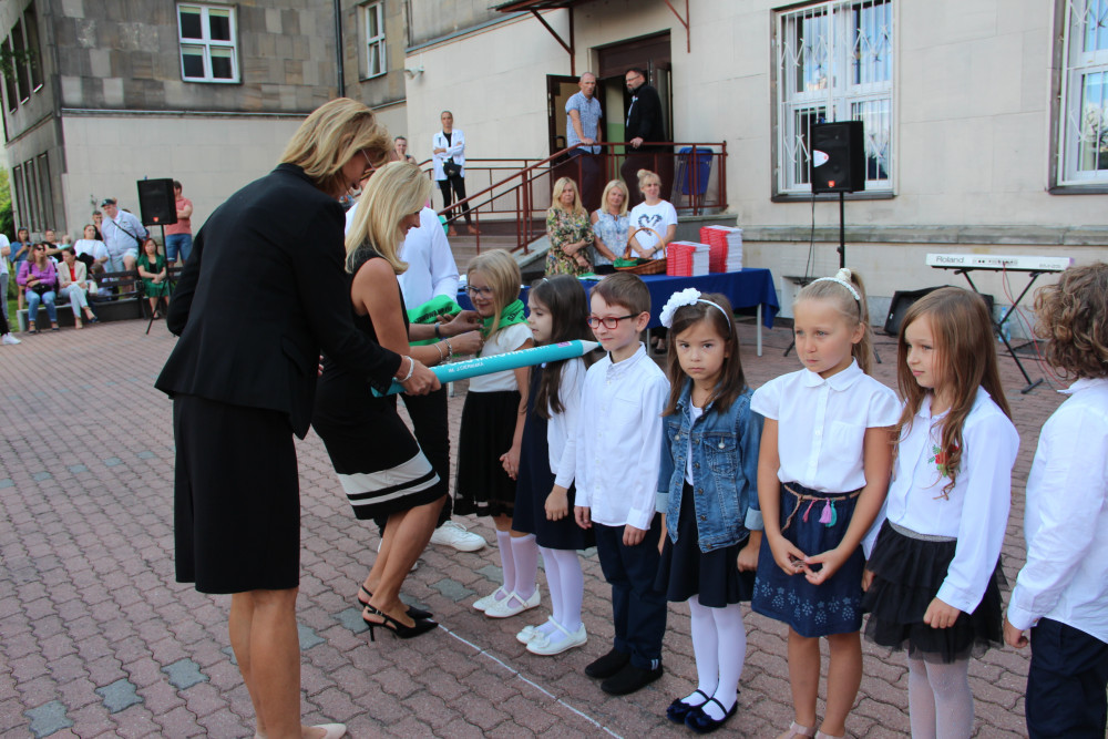 Wręczyły one uczniom klas pierwszych pamiątkowe książki oraz workoplecaki ufundowane przez Urząd Dzielnicy Targówek, dokonały również pamiątkowego wpisu w Kronice szkoły.