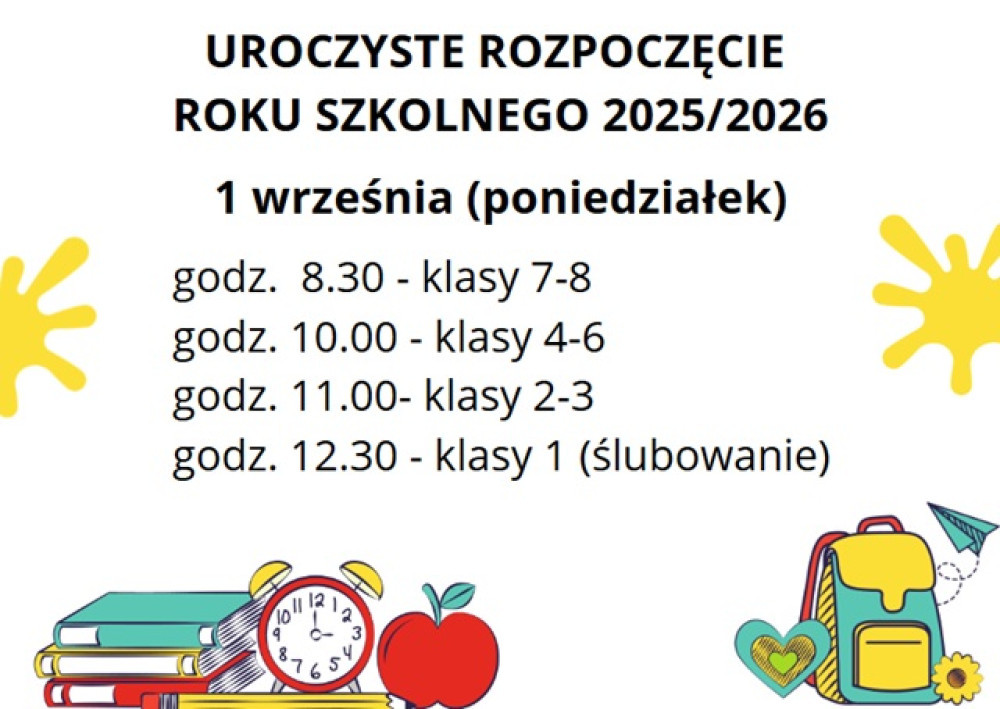 W klasach 1 uroczyste rozpoczęcie roku szkolnego połączone będzie ze Ślubowaniem.