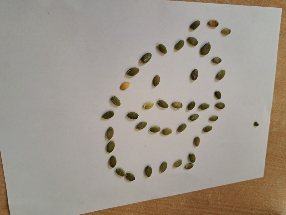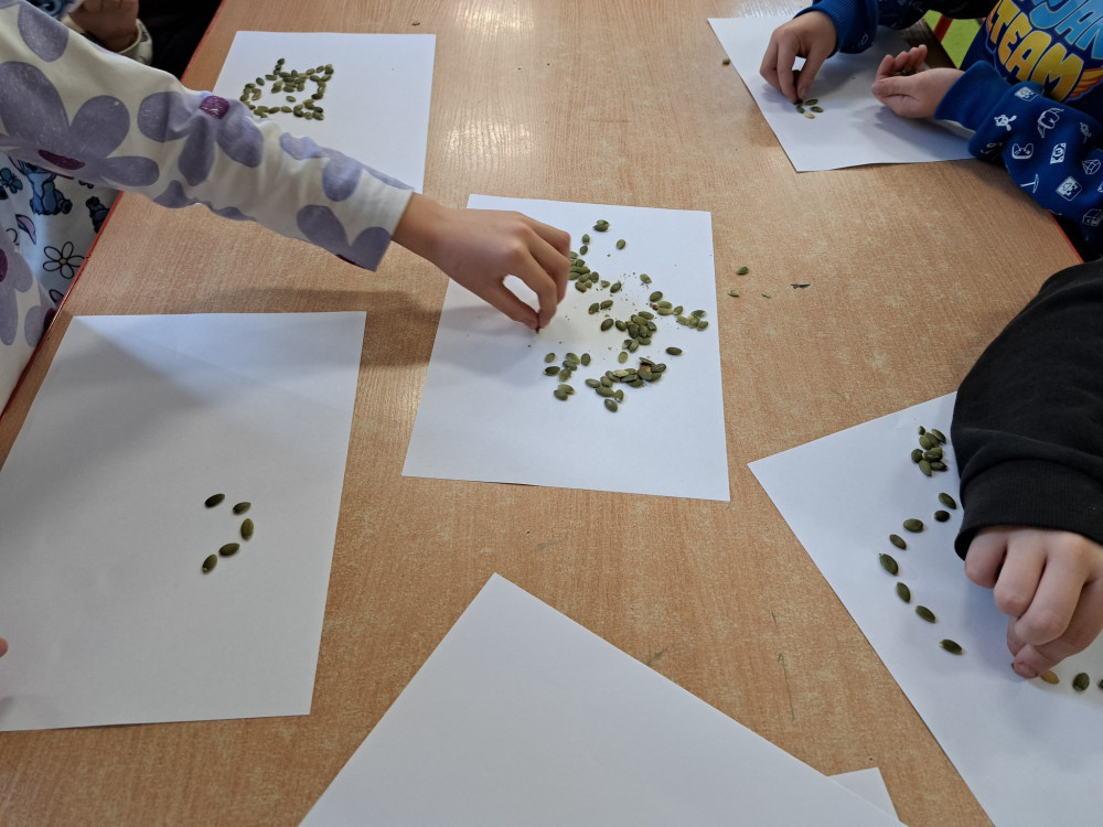 - Układały wzory z pestek dyni, tworząc fantastyczne kompozycje,
