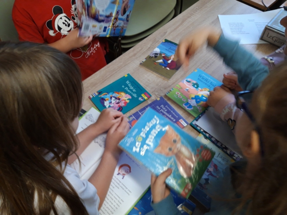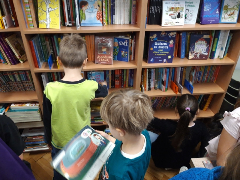 Klasy pierwsze odbyły w bibliotece swoje pierwsze zajęcia biblioteczne. Wspólnie z bibliotekarzami odczytali wiersz Skarga Książki. Dzieci dowiedziały się, jak dbać o wypożyczone książki - w końcu są one wspólnym dobrem!