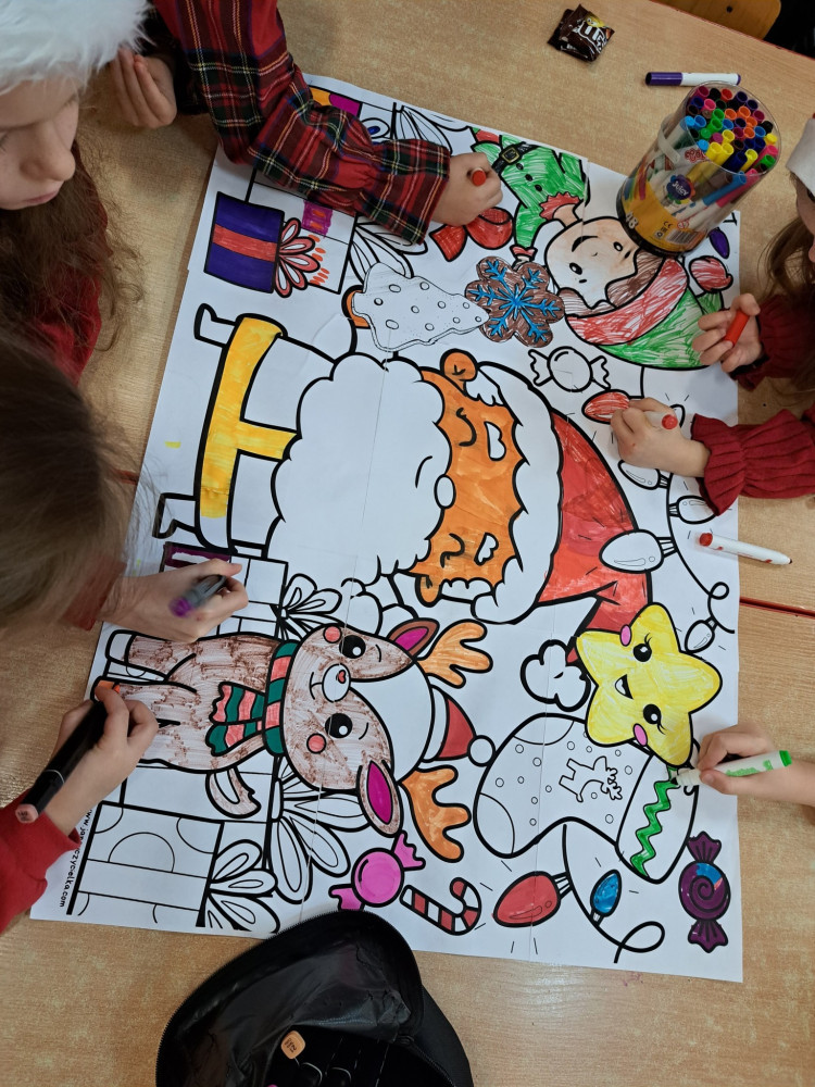 W części plastycznej powstały piękne świąteczne kartki oraz urocze mikołaje, które wprowadziły nas jeszcze bardziej w magiczny klimat zbliżających się Świąt.