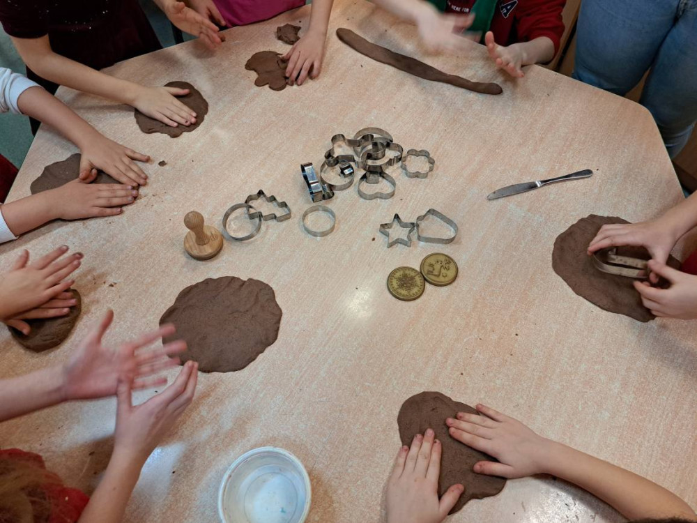 Nie zabrakło też świetnej zabawy! Mali uczestnicy grali w mikołajkowe memory, kolorowali dużą świąteczną kolorowankę, a także przygotowali piernikową masę, z której wycinali fantastyczne, pachnące wzory.