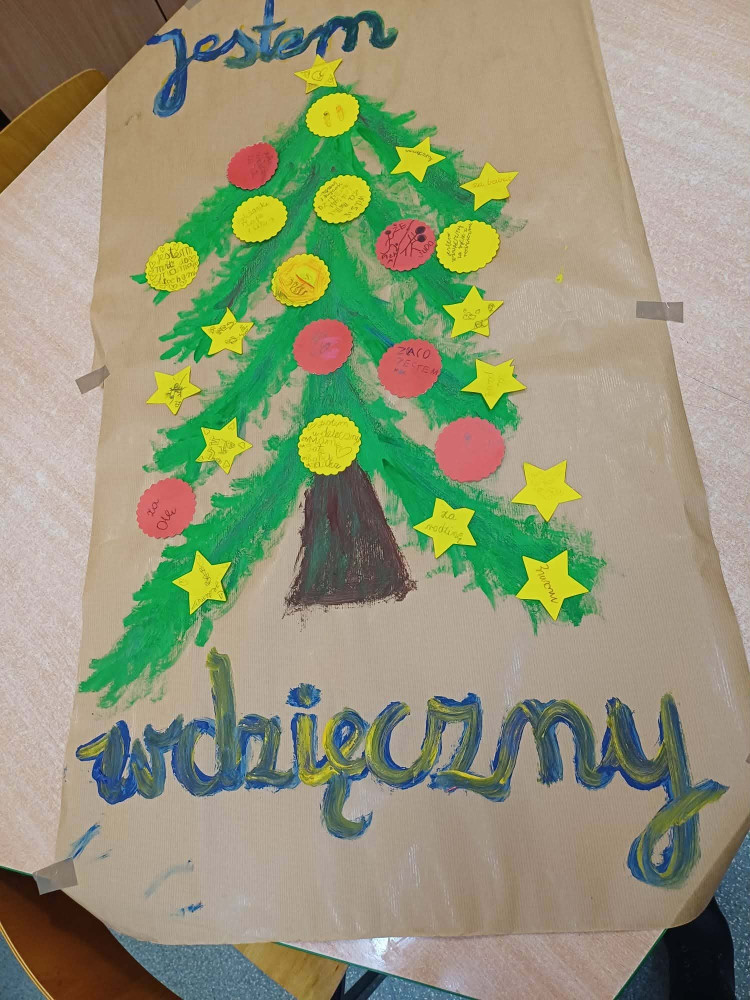 W ramach grudniowego zadania Szkoły Myślenia Pozytywnego w naszej świetlicy powstała Choinka Wdzięczności.